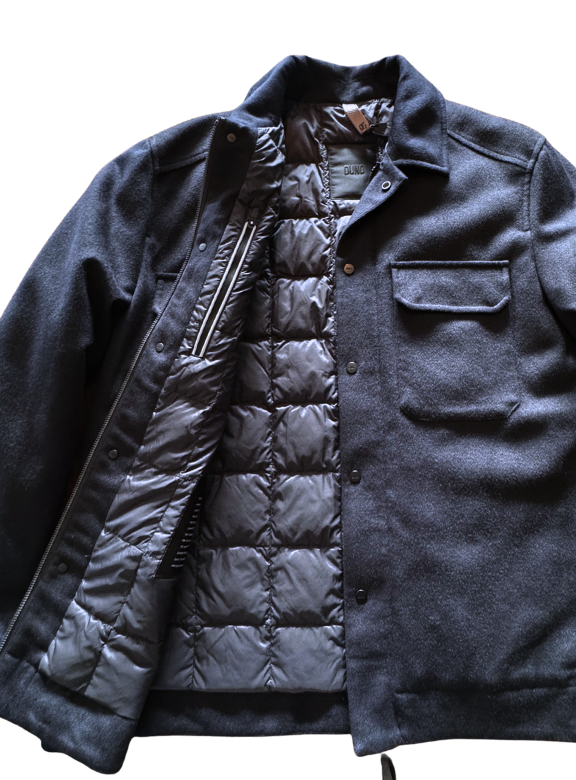 Het Italiaanse merk Duno is gepecialiseerd in kwalitatief hoogwaardige en comfortabele jassen. Dit sportieve wollen met donsgevoerde shirtjacket zit tussen een jas en overshirt in. Ideaal voor het voor en najaar..